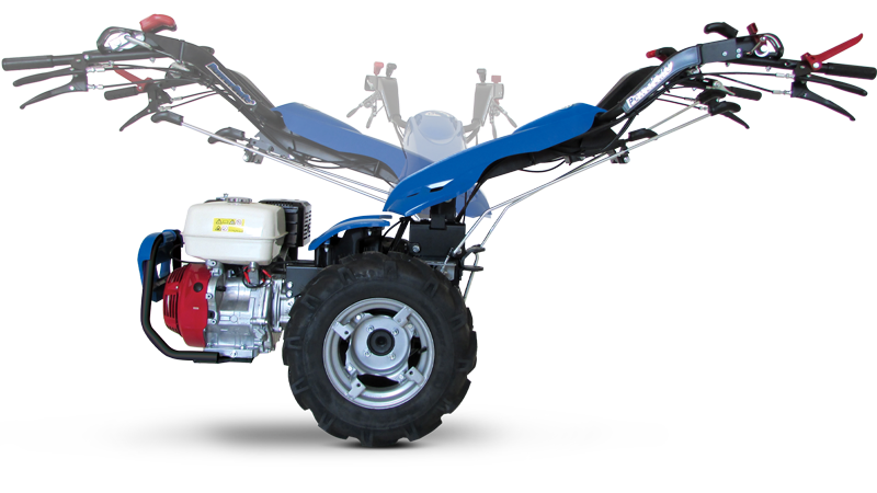 - Sofortiges Anhalten der Maschine und des Arbeitsgeräts bei Loslassen des Lenkers und ein doppelt wirkendes System für die sichere Wiederaufnahme der Arbeit.