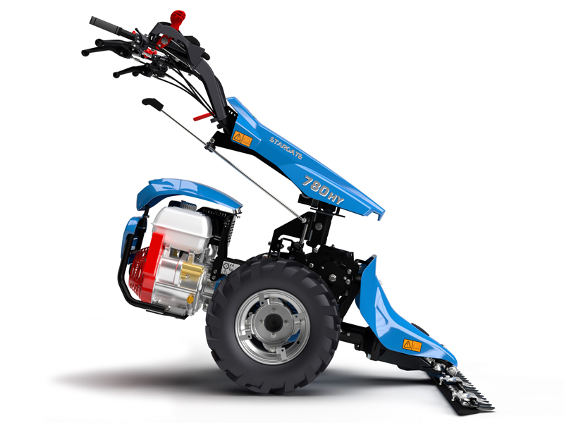 Der Benutzer des Einachsers XB80 HY StarGate profitiert von der hydrostatischen Kraftübertragung, insbesondere bei unregelmäßiger Bodenbeschaffenheit, an Hängen, beim Manövrieren um Hindernisse und im Allgemeinen, wenn die Geschwindigkeit und die Fahrtrichtung der Maschine häufig geändert werden müssen.